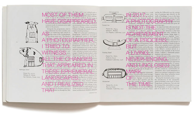 Ce livre est conçu à partir d’un livre paru en 1980 qui présente des « architectures canard », c’est-à dire des bâtiments qui prennent la forme d’autres objets. Je voulais retrouver et photographier ces architectures présentées dans le livre, quand elles existaient encore. Avant mon départ, j’avais déjà fait des repérages en utilisant Google Earth, comme je l’avais fait sur d’autres projets. En arrivant à Los Angeles j’avais donc une idée assez précise de ce que j’allais y trouver. Ensuite les images ont été incorporées dans le livre d’origine, avec un système de réalité augmentée.