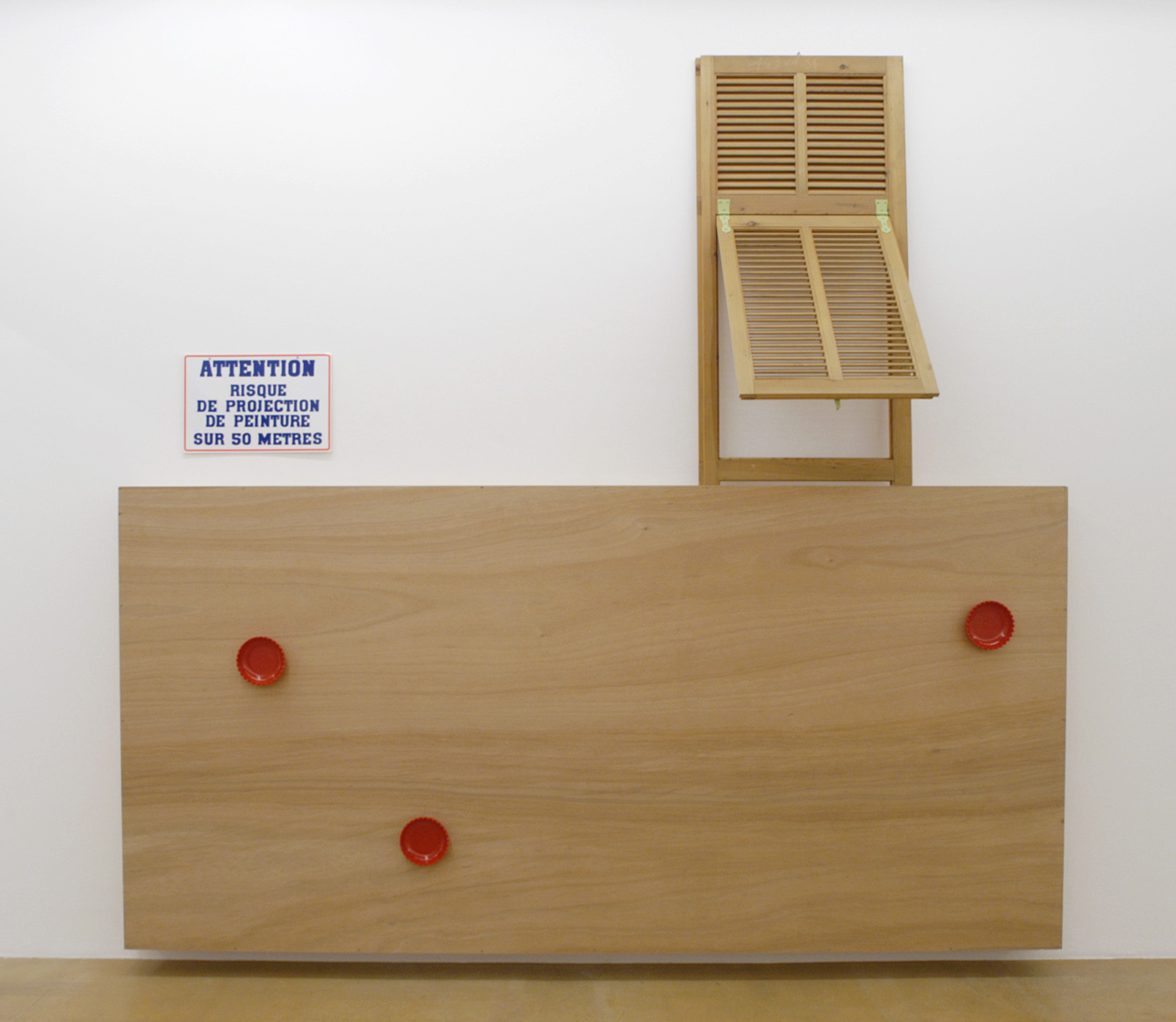 Contreplaqué, cendriers, jalousie, 294 x 304 x 55 cm
