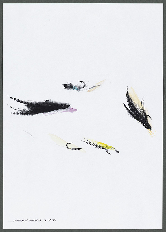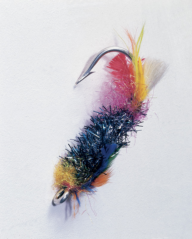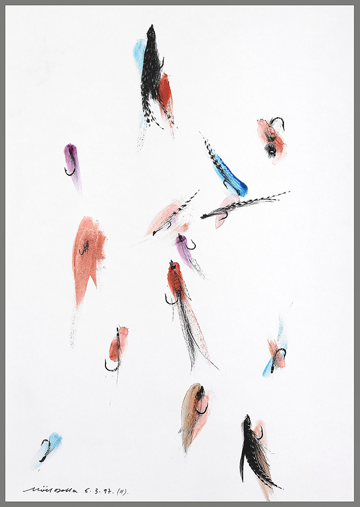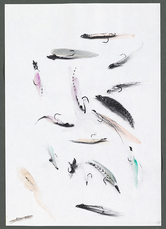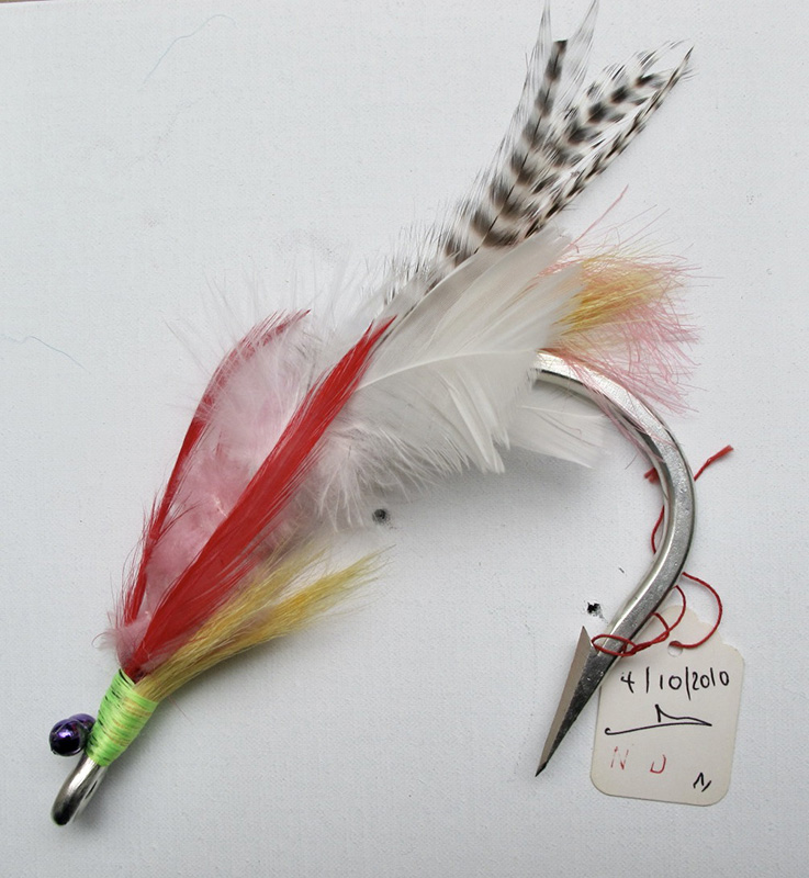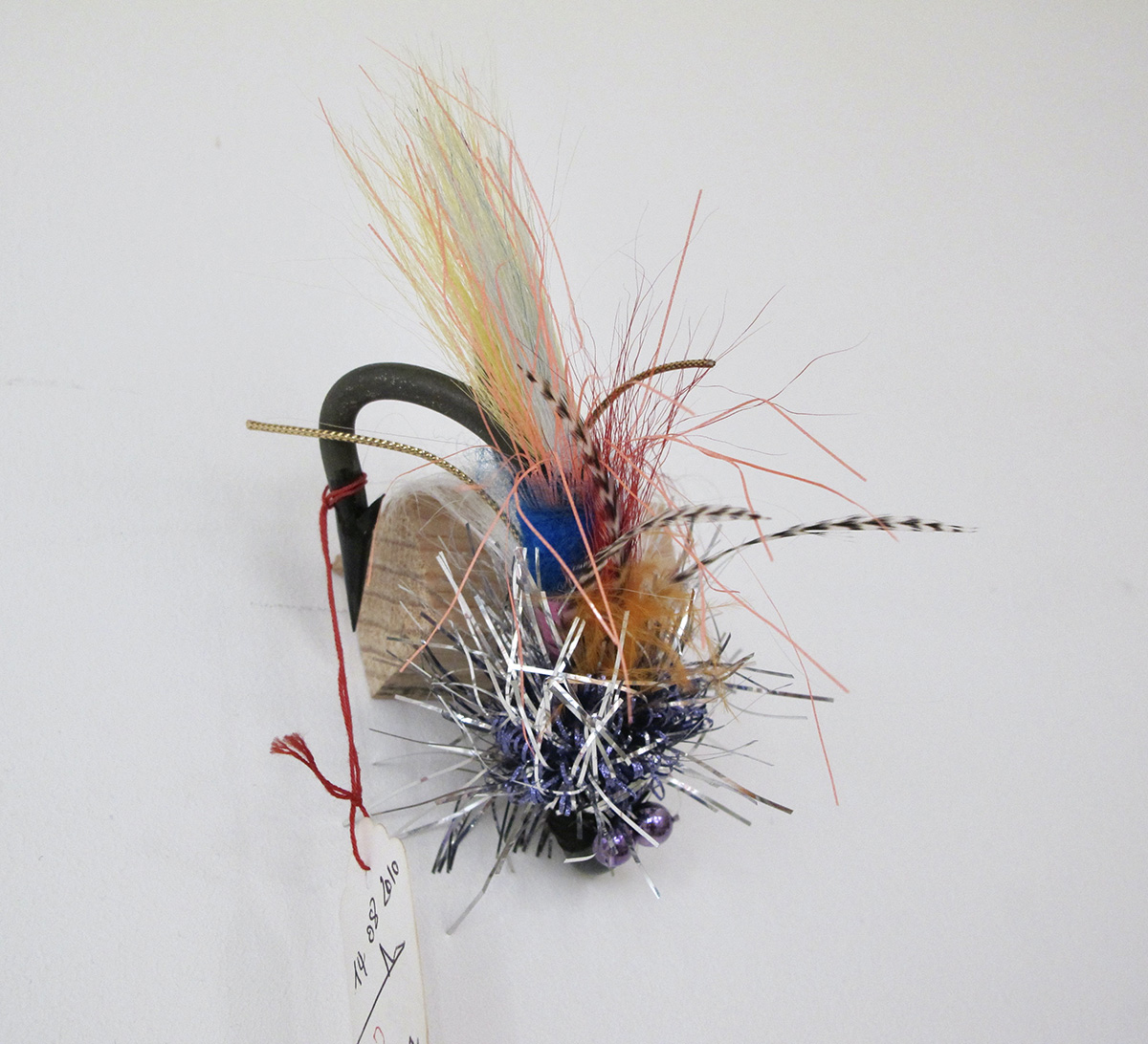 Hameçon, plumes, fils et perles, 25 x 15 cm |