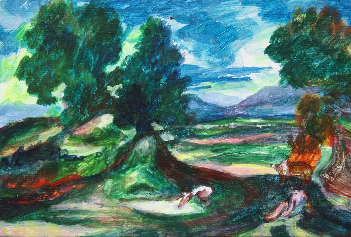 Tempera à l’œuf sur carton entoilé, 12 x 16 cm |