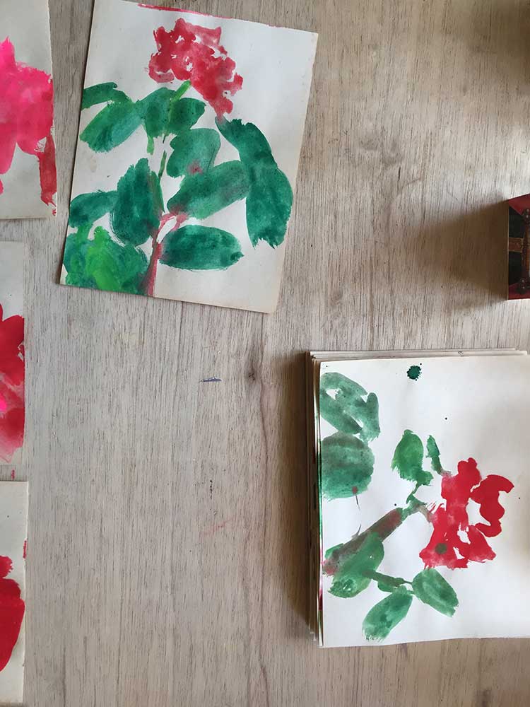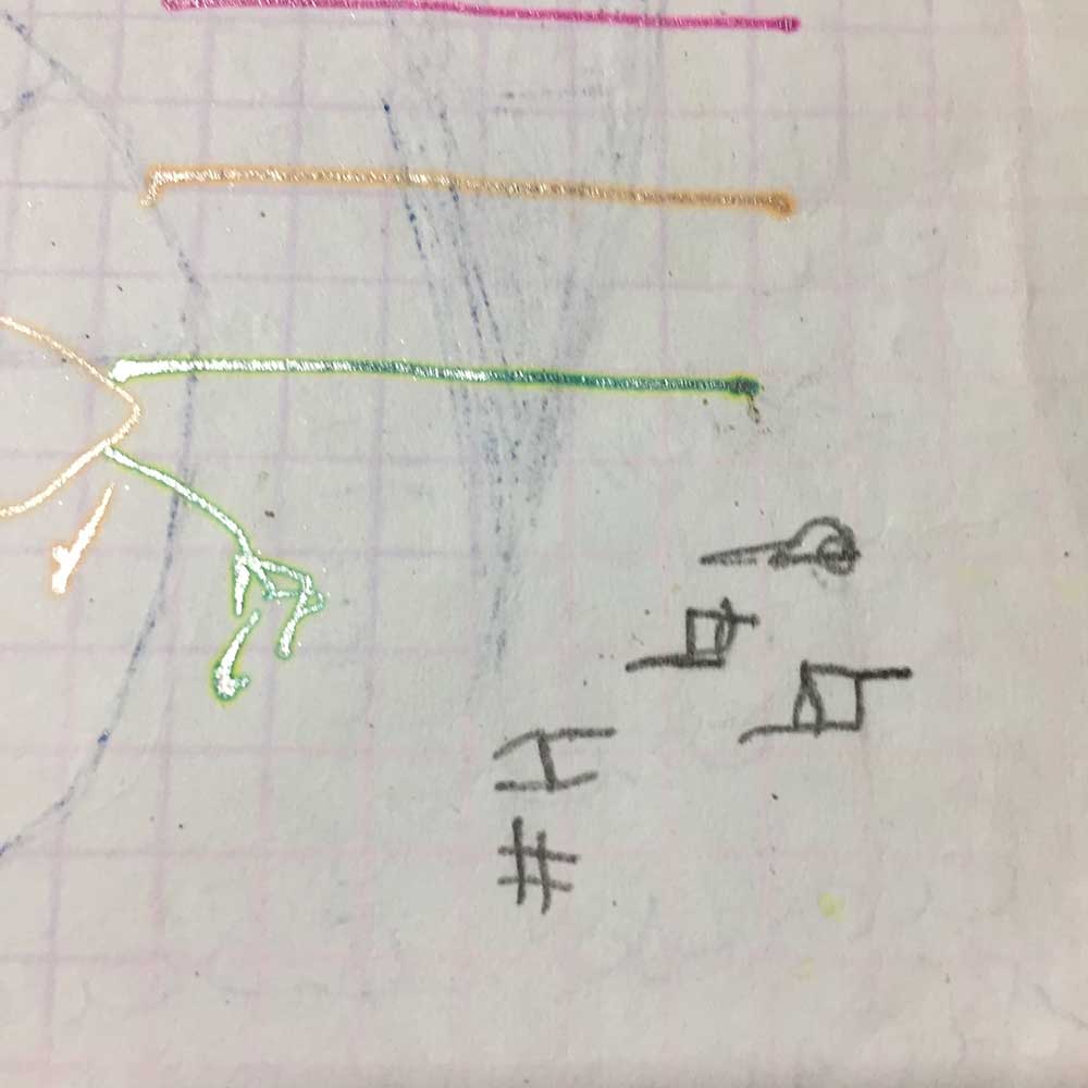 Dessins à la colle de peau sur papier ancien