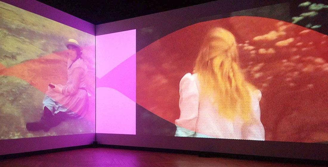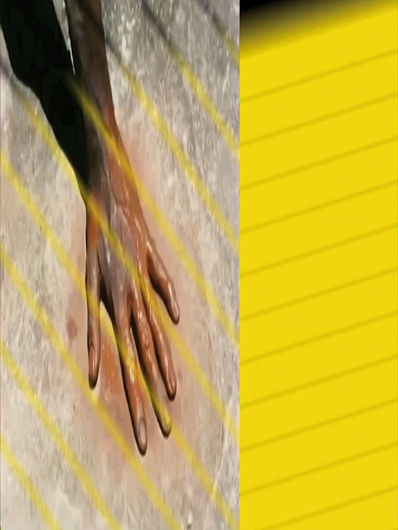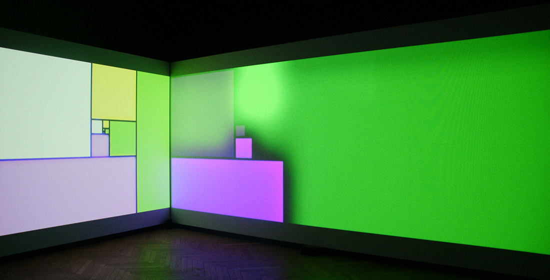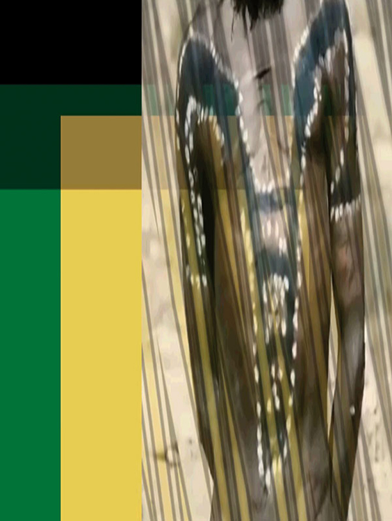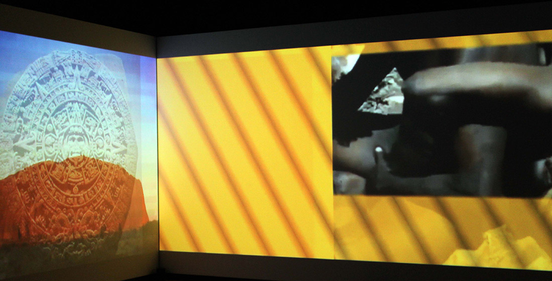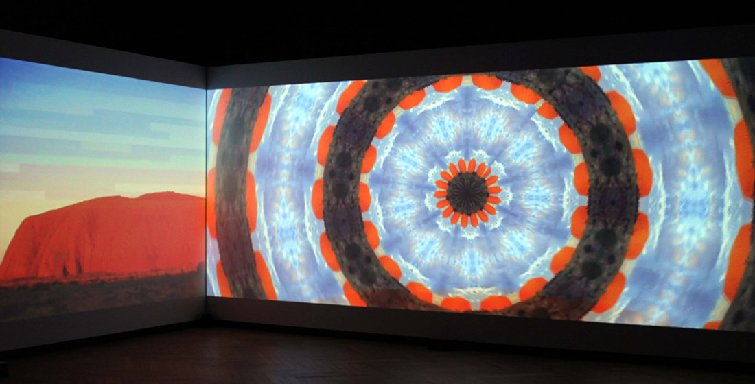 L’insertion de monochromes comme référents et portes de passage que l’on remarque très rapidement vient de son univers plastique (utilisation de l’art optique notamment) mais aussi d’une vision picturale du cinéma et de la vidéo confondus. Car ici les frontières entre genres sont poreuses comme sont poraux les fragments hétéroclites mis ensemble. Rien n’oblige le regardeur de connaître d’où viennent ce qui apparaît comme des citations. On reconnaît des fragments de documentaire sur l’Inde et sa danse et des images concernant les Aborigènes australiens.