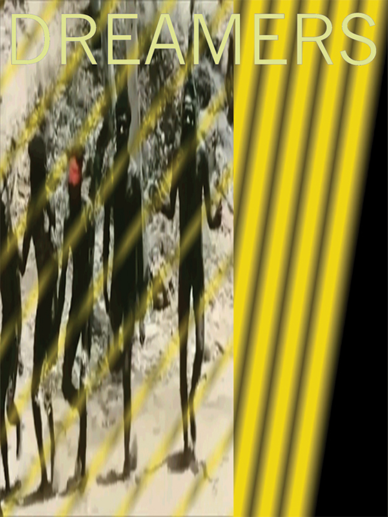 Dreamers est un film (ou une suite d’images mouvantes organisées,) qui se compose de six parties qui peuvent être vues à la suite les unes des autres. Mais aussi simultanément sur deux écrans comme ici, ou sur plusieurs. Le film n’a alors plus de début ni fin. Et le montage n’est plus une structure fixe mais un puzzle à partager avec le spectateur, afin de permettre toutes les associations de mots, d’images et d’idées.