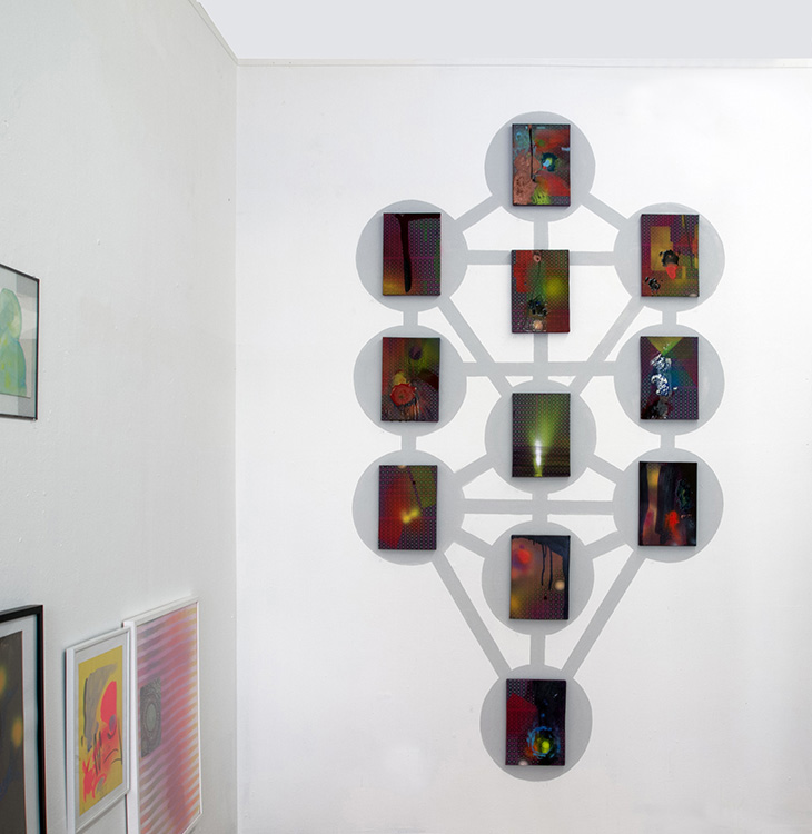 Les évocations qu’elle convoque dérivent de l’atome au tout, rappelant la puissance de la peinture de pouvoir témoigner des espaces, des temporalités, de la vitesse, des matières et des imaginations. Les circulations, les liens, les vibrations, les troubles, les harmonies qui s’opèrent sur la toile stimulent nos émotions. Chaque œuvre est une planète en devenir prenant part dans un cosmos plus vaste.