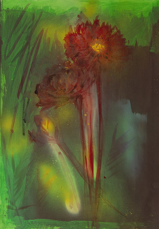 Pigment, spray, acrylique et huile sur papier, 21 x 29,7 cm