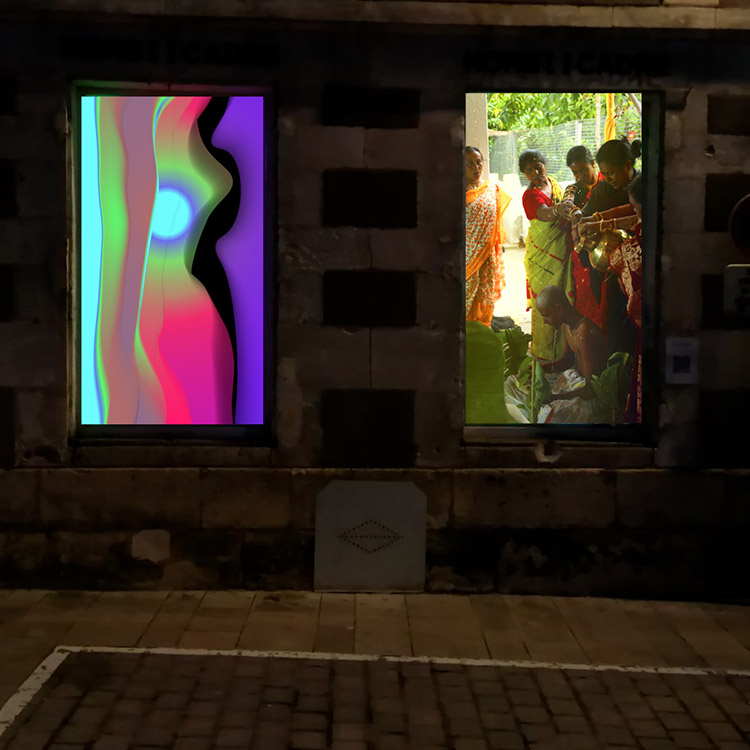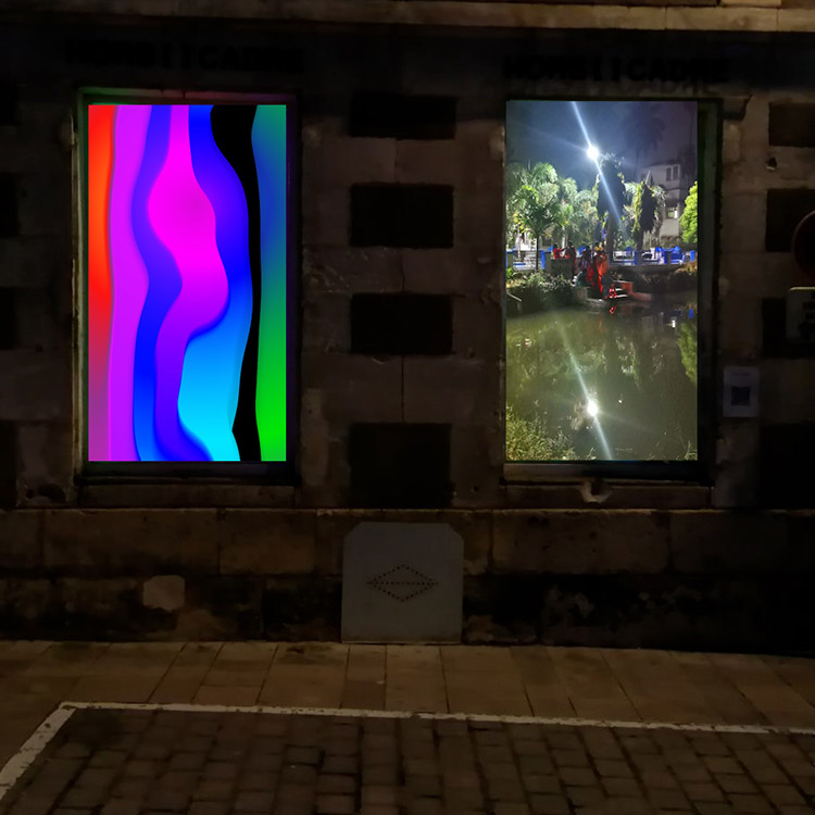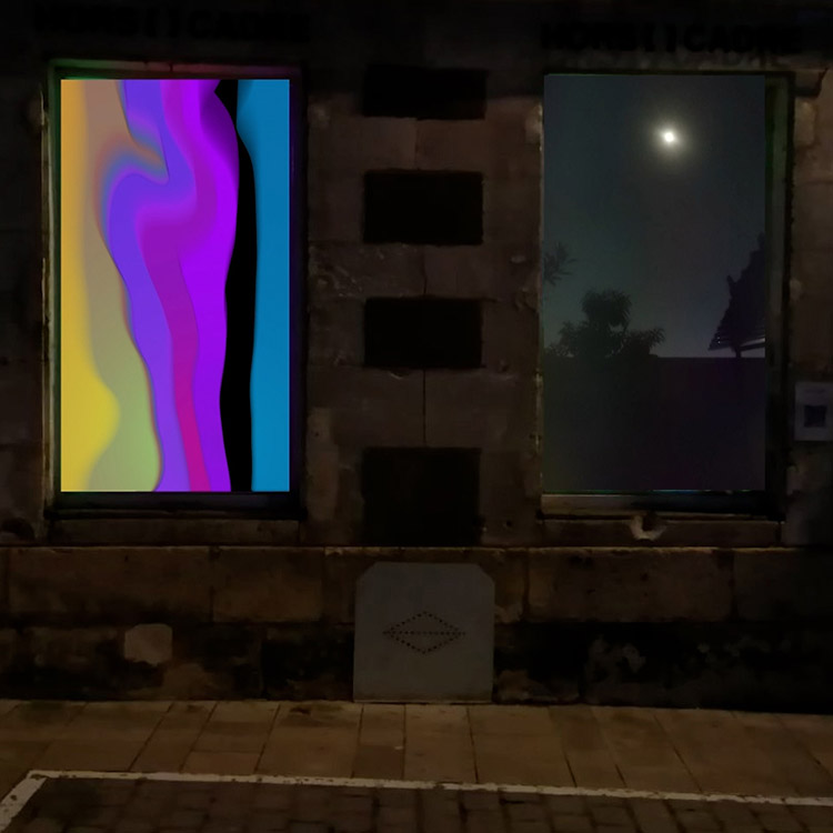 Projections nocturnes sur les fenêtres de Hors[ ]Cadre, visibles depuis la rue entre 18h et 22h30 |