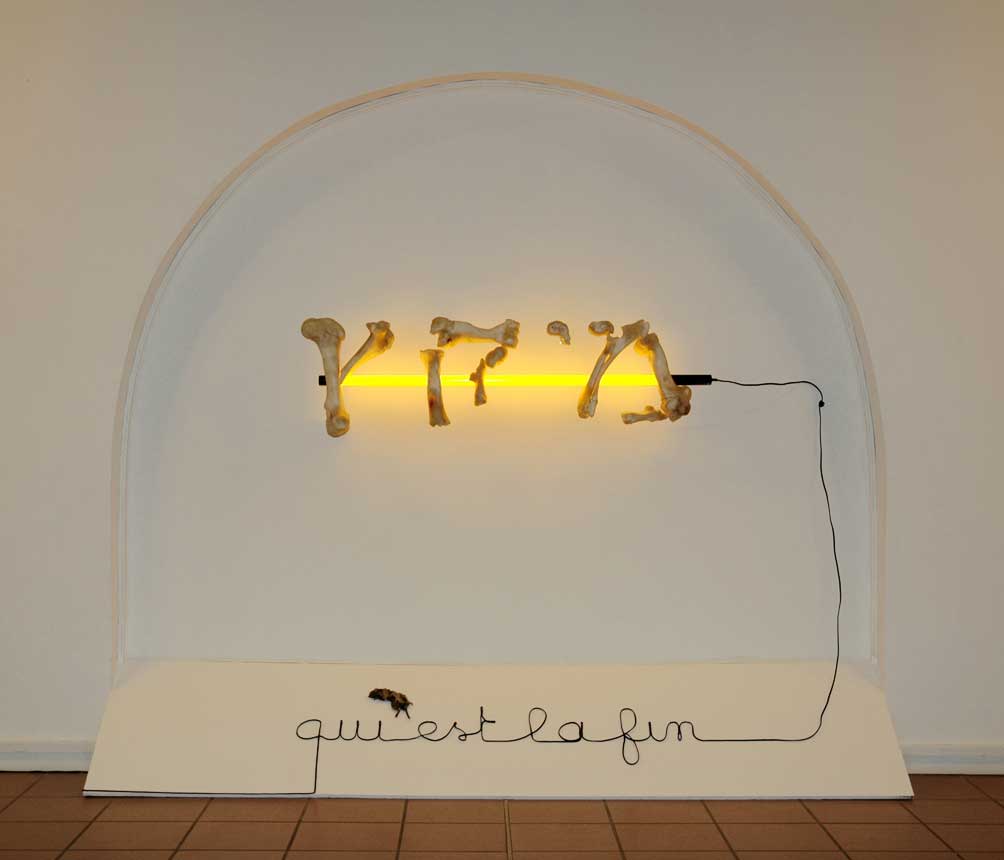 Os, néon, acier, verre, fil électrique, rat momifié, dimension variable