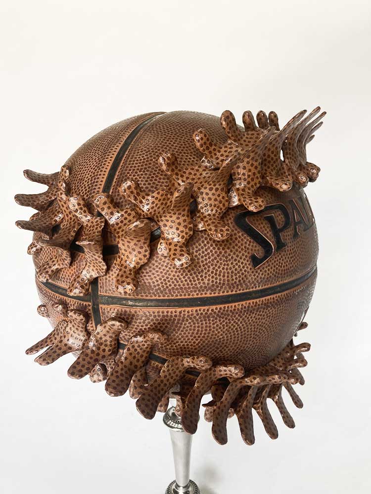 Ballon de basket, résine polyuréthane, chandelier en métal, 23,5x29x42,5cm