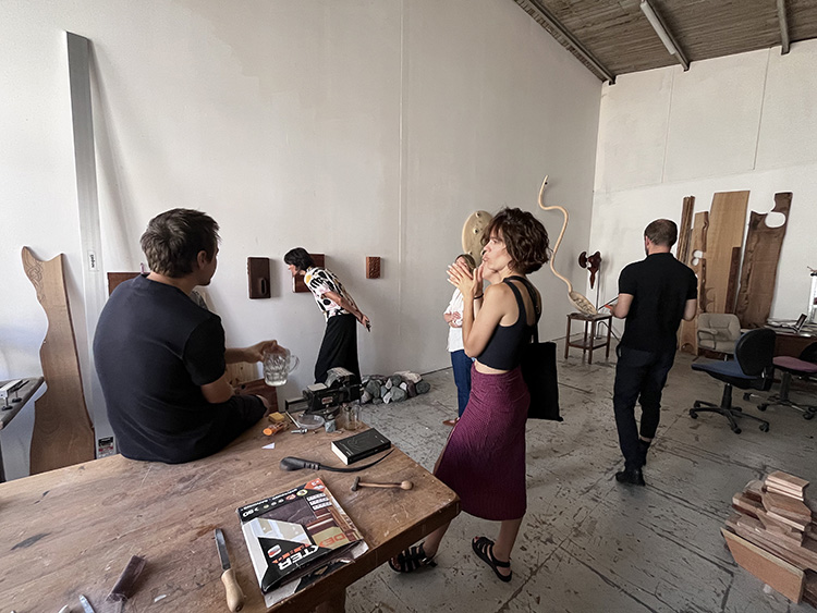 | Documents d’artistes organise un séjour en immersion avec un accompagnement « à la carte » en fonction des intérêts de chacun·e. Chaque meet-up se déroule sur 3 jours, il est l’occasion pour 4 commissaires et/ou critiques d'art de découvrir le travail d’une douzaine d’artistes. Les personnalités invitées ont des profils différents, extra-territoriaux, elles sont accompagnées dans leur prospection. Nous tentons d’associer commissaire d’exposition indépendant·e, directeur·rice de centre d’art / institution, directeur·rice de lieu intermédiaire / artist-run space. Dans le parcours, nous sommes attentif·ive·s aux différentes générations d’artistes et aux pratiques, ce qui est assez représentatif de notre travail documentaire. Chaque session fait l’objet de l’édition d’une brochure bilingue sur laquelle est indiqué le parcours de l’artiste, un visuel, son contact direct ainsi qu’un lien vers son dossier en ligne. |