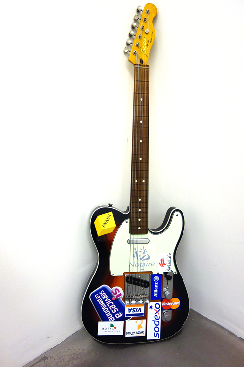 Satisfactions 2015 [modèle Signature Edition Limitée] Autocollants sur Guitare Telecaster, 98 x 33 x 5 cm Collection Frac Limousin 2015 Réduire l'espace entre les utopies et la réalité sociale.