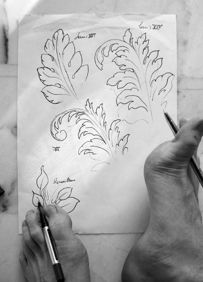 My challenge : to reconstitue with feet, succinctly, the history of representation using Acanthus leaves, suffering overcome by Paris during the reigns of Louis XIV, Louis XV and Louis XVI. Through this action, I will certainly echo the eternal projects of our leaders in the domain of urban prestige. Moreover, using the language of flowers, Acanthus signifies « Love of art. Nothing will ever seperate us. » |