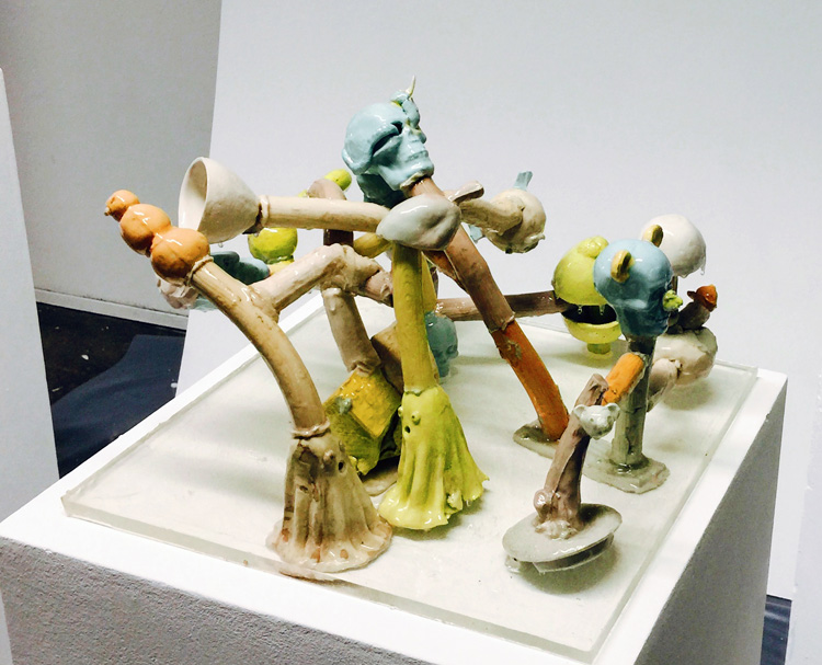 Porcelaine teintée, socle en résine, 50 x 50 x 35 cm