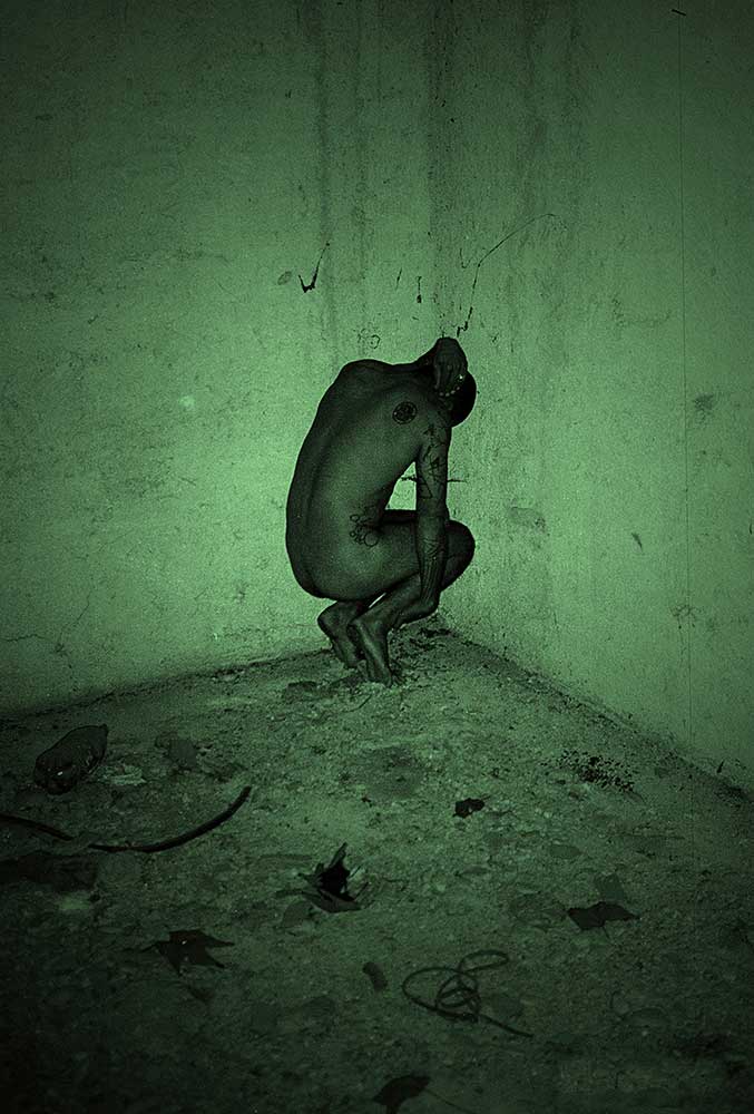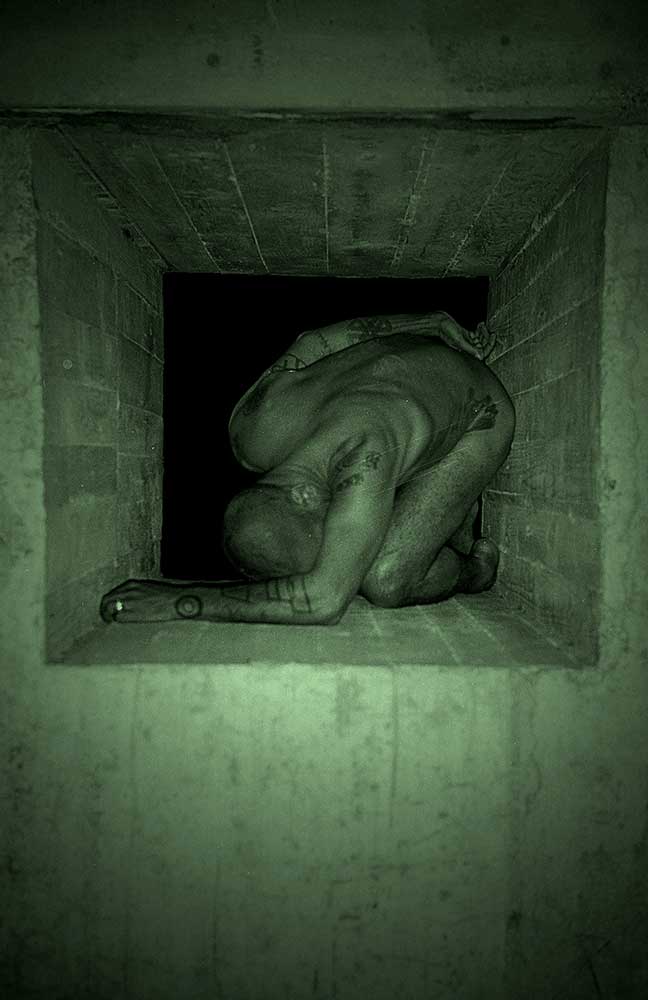 Je plaçais donc mon corps dans la posture du bourreau ; enfin c’est ce que je croyais. Plus tard, quand je développais les pellicules, c’est l’image d’un corps prostré, enfermé — malgré cette carrure incarnée — qui apparaissait dans le cadre, comme pour nous rappeler que la victime et le bourreau sont indissociables. |