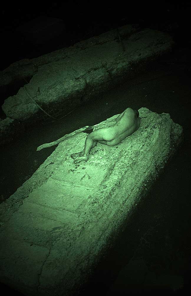 En 2010, je traversais la république de Bosnie-Herzégovine, je me mettais en scène dans des autoportraits en me rendant dans différents lieux directement associés à la guerre : Mostar, Srebrenica, Sarajevo, Bradina, etc. Je voulais dénoncer, avec mon corps massif et mon sexe, tel un outil de destruction massive, le viol. Dans ce conflit — tout particulièrement — il a été appliqué méthodiquement comme instrument de nettoyage ethnique pour anéantir physiquement et psychologiquement les populations.