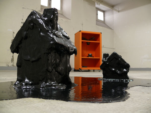Installation, plasticine, peinture acrylique, dimensions variables