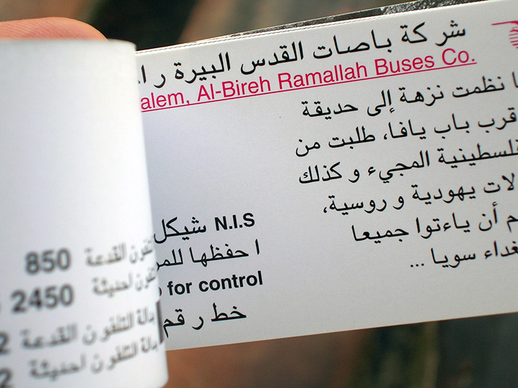 … J’ai mon père, ça fait 1 an et demi que j’essaye d’avoir une autorisation pour qu’il vienne visiter sa famille, il est en retraite en Algérie, ça fait 10 ans qu’il est pas venu, on demande le visa : ça se fait pas chez l’Autorité Palestinienne, on fait, on dépose dans un bureau palestinien et les Palestiniens vont envoyer à Erez aux Israéliens et ils refusent, on envoie une réponse : refusé, refusé, refusé, ils donnent pas de raison, on ne sait pas pourquoi… J’ai un ami, sa femme est en Libye, elle veut rentrer, ça fait 2 ans qu’elle essaye de rentrer, il demande le visa pour elle et c’est refusé, refusé… On ne peut pas être autonome si on ne peut pas se voir entre nous sur notre terre, on ne peut pas être autonome si on ne se déplace pas librement… L’Autorité Palestinienne ne peut pas délivrer de passeport pour les Palestiniens s’ils n’ont pas de carte de résidence israélienne, si les Israéliens te donnent une autorisation de résidence, ils te donnent l’autorisation comme quoi tu es un citoyen palestinien, l’Autorité peut te délivrer un passeport, tu n’as pas d’autorisation isrélienne, tu ne peux pas avoir de passeport palestinien…