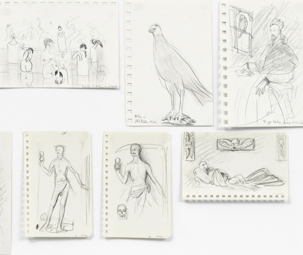Crayon sur papier, 202 éléments, 17,7 x 12,1 / 15,2 x 9,7 cm / 14,8 x 12 cm chacun