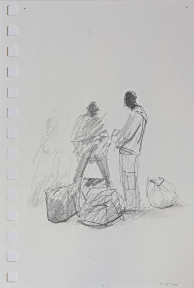 Crayon sur papier, 100 éléments 12 x 8,5 cm chacun