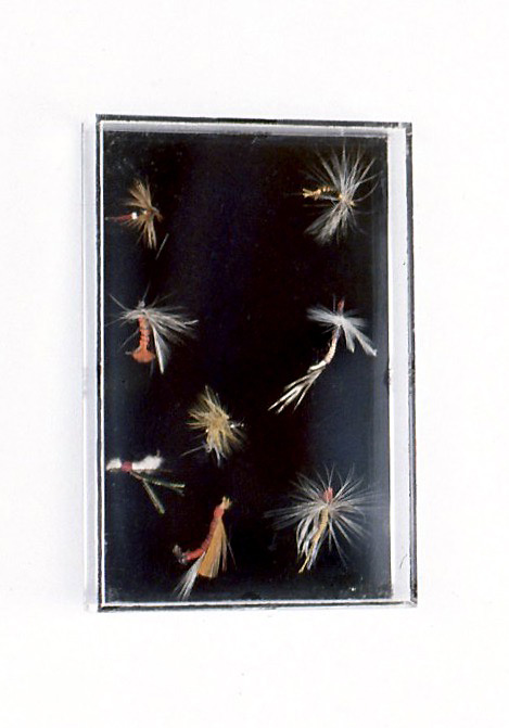 Plumes, métal, coton, plexiglass, 18 x 12 2,5 cm