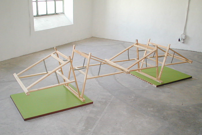 Device : 6 sawhorses, paint, wood, 380 x 80 x 90 cm