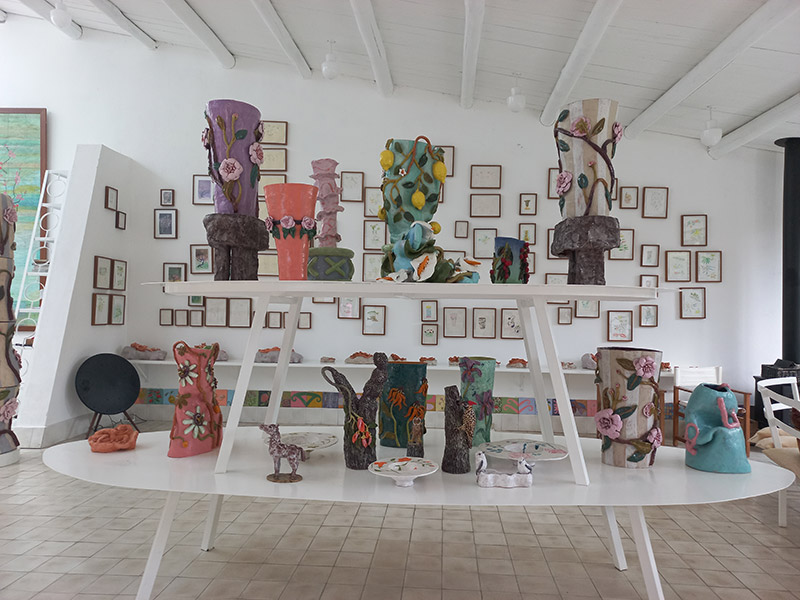 « Garzon est un petit village cher à mon cœur. Chaque soir après le travail, j’ai sillonné les chemins à bicyclette, m’imprégnant de la beauté des immenses prairies rythmées par les eucalyptus, acacias, ombus, ceibos et autres arbres, des lagunes où des milliers d’oiseaux viennent soir et matin. Les habitants du village qui travaillent pour Francis Mallmann venaient me voir à l’atelier et m’ont appris les noms des fleurs, des oiseaux. »