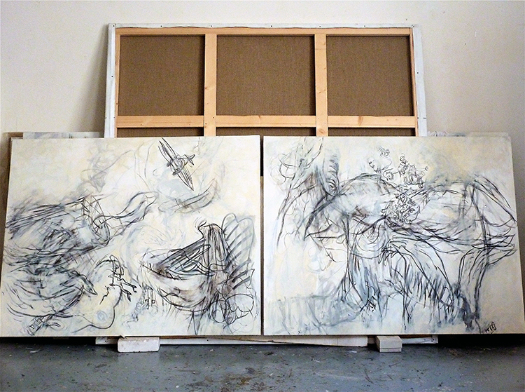 Fusain et détrempe sur toile de lin, 114 x 146 cm