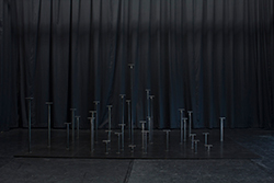 Bois peint, verre fumé, sable noir, bois, 204 x 75 x 120 cm
