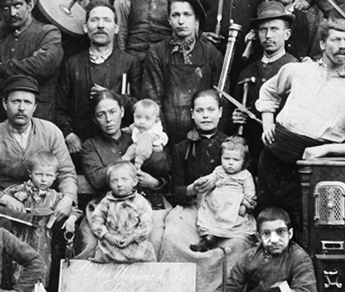 Autoportrait avec une famille rêvée, à partir d'une photo d'un groupe d'ouvriers d'une usine de Fourmies (Nord-Pas-de-Calais, fin du 19e siècle)