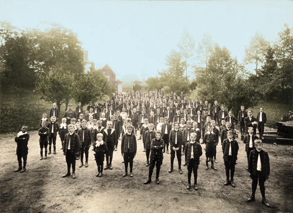 Photographie des individus en déformation ou plutôt d'un groupe d'élèves en formation au début du 20e siècle