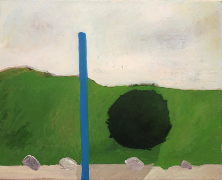 Malgré l'aspect au premier abord paisible, ces peintures possèdent toutes quelques chose d'incongru, un élément perturbateur qui se glisse dans l'espace de l'après-midi paisible de la ville : un bâton sans raison, une plante trop grasse, une plateforme de béton. Ou sinon, une légère exagération de certains traits, comme si certains objets prenaient une dimension, une importance qui dépasse leurs possibilités réelles (et en disant cela ils deviennent déjà des personnages de fiction). Ou bien, une perspective étrange et presque maladroite. La présence de quelque chose qui ne tourne pas rond, comme une distorsion, comme l'impression qu'il faut cligner des yeux.