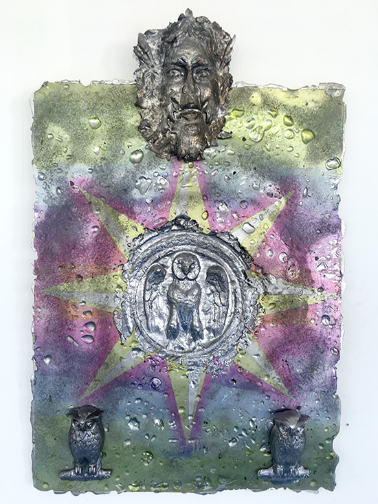 étain, zinc, cuivre, bois, plâtre, transfert d'encre, 155x75cm,