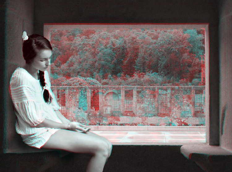 The interest of the research techniques anaglyph by Mireille Loup lies in the fact that the images outside wearing glasses and therefore beyond three-dimensionality, provide a particular aesthetic blur just use the universe of this series.