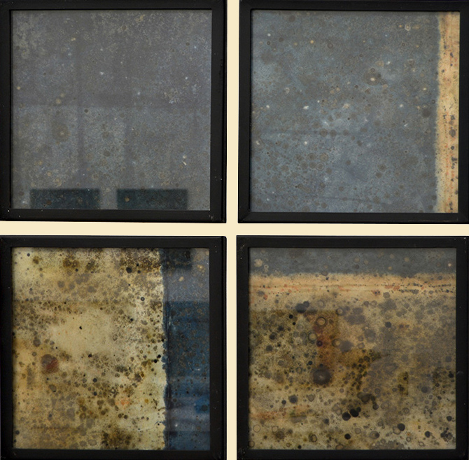 Culture de champignons, Bleu de méthylène et Rovral WP* sur plastique marouflé sur papier