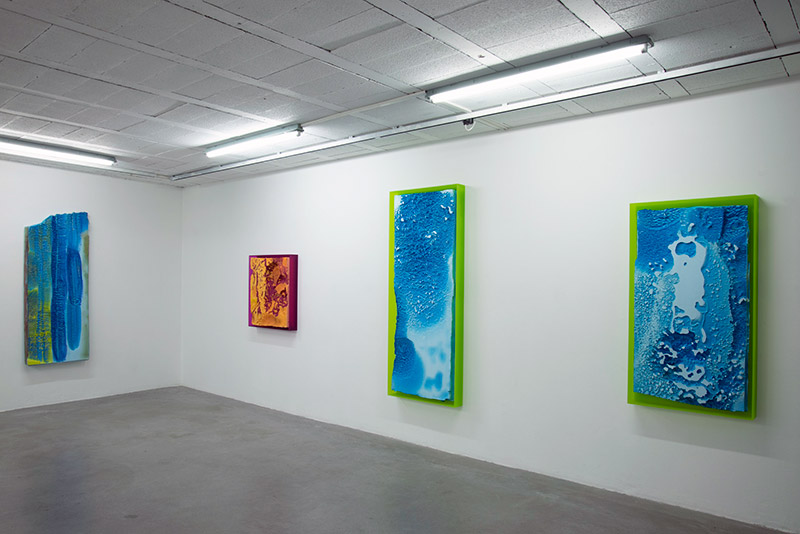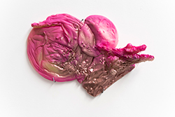 Féministe ou pas, Anita Molinero s’est depuis longtemps émancipée des assignations technico-sociales. Depuis les années 2000, l’artiste joue beaucoup avec le feu : le Zippo a cédé la place au chalumeau et au décapeur thermique. Qu’il s’agisse de faire cloquer ou goutter le polystyrène de nos emballages et isolations, de fondre, de tordre ou de trouer le polycarbonate de nos toitures et ouvertures, le geste reste expérimental, toujours risqué. Il ne vise pas la destruction mais une mutation alchimique. La chaleur modèle le plastique comme d’autres outils modèlent la pierre, le bois ou le métal, et la flamme calcine moins qu’elle n’engendre une palette de couleurs et de textures, demeurées en germe jusque-là. L’artiste teste les limites, la « défaillante arrogance » des matériaux que la pétrochimie a produit depuis un siècle, ces polymères qui se sont immiscés dans toutes les activités humaines. Quoi de plus jubilatoire que de les pousser dans leurs retranchements, de guetter le point de rupture, l’instant où ils vont échapper à sa maîtrise pour exprimer des qualités matérielles et esthétiques fascinantes, aux confins du grotesque et du sexué. |