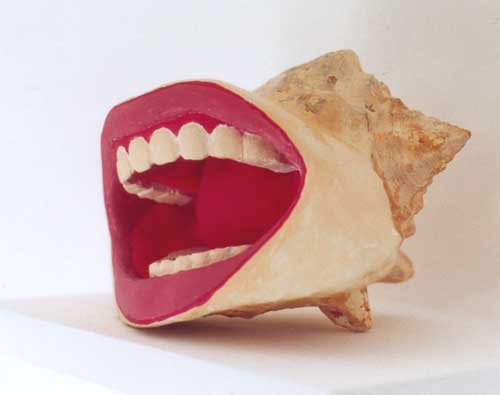 J’ai modelé sur un coquillage une bouche qui sourit. Puis, en ai fait le moule, y ai introduit un système électronique qui enregistre des sons et les retransmet avec un haut-parleur.