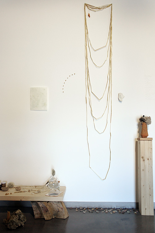 Les éléments, terre, végétaux, minéraux, côtoient les récoltes de plumes, les dessins.