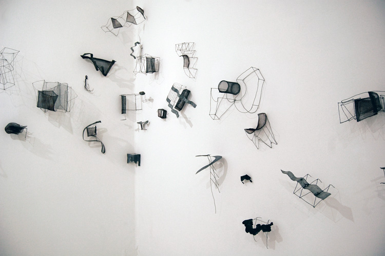 C'est ce type d'images, formant des esquisses d'architectures conceptuelles, une forme iconique particulière, qui m'a travaillé pendant la production des pièces de ce troisième temps de l'heure du dessin. J'aime envisager ces dessins dans l'espace, ces petites maquettes, comme des diagrammes de force, à la manière de D'Arcy Thompson, que la forme soit produite par un système, que du coup elle révèle, ou que se soient dégagées des relations spontanées entre des formes données. |