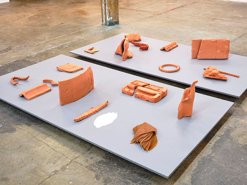 Pièce de gauche : terre cuite, 50 x 10 x 2 cm