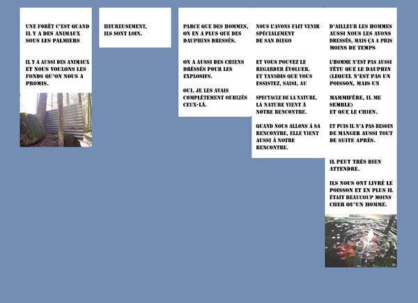 Bambiland est un projet de parc d’attraction du dictateur serbe Miroslav Milocevic. Bambiland est un livre de Elfreide Jelinek publié en 2003 évoquant le déclenchement de la guerre en Irak où le monde, les personnes comme les sociétés et les pays deviennent pour ainsi dire le paysage collatéral, à l’instar des euphémiques dégâts collatéraux, d’une représentation et d’un discours médiatique de la section marqueting de la Maison Blanche qui utilise le montage comme arme. Or, le montage est aussi un art dans lequel excelle Elfriede Jelinek. Après avoir utilisé des citations dans plusieurs vidéos, j’ai entrepris en 2007 de refaire ce livre en employant divers moyens et diverses stratégies pour voir ce qu’il en sortira. |