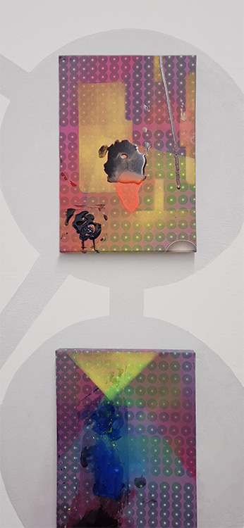 Spray, huile, acrylique et pigment sur toile, 60 x 30 cm (x3) |