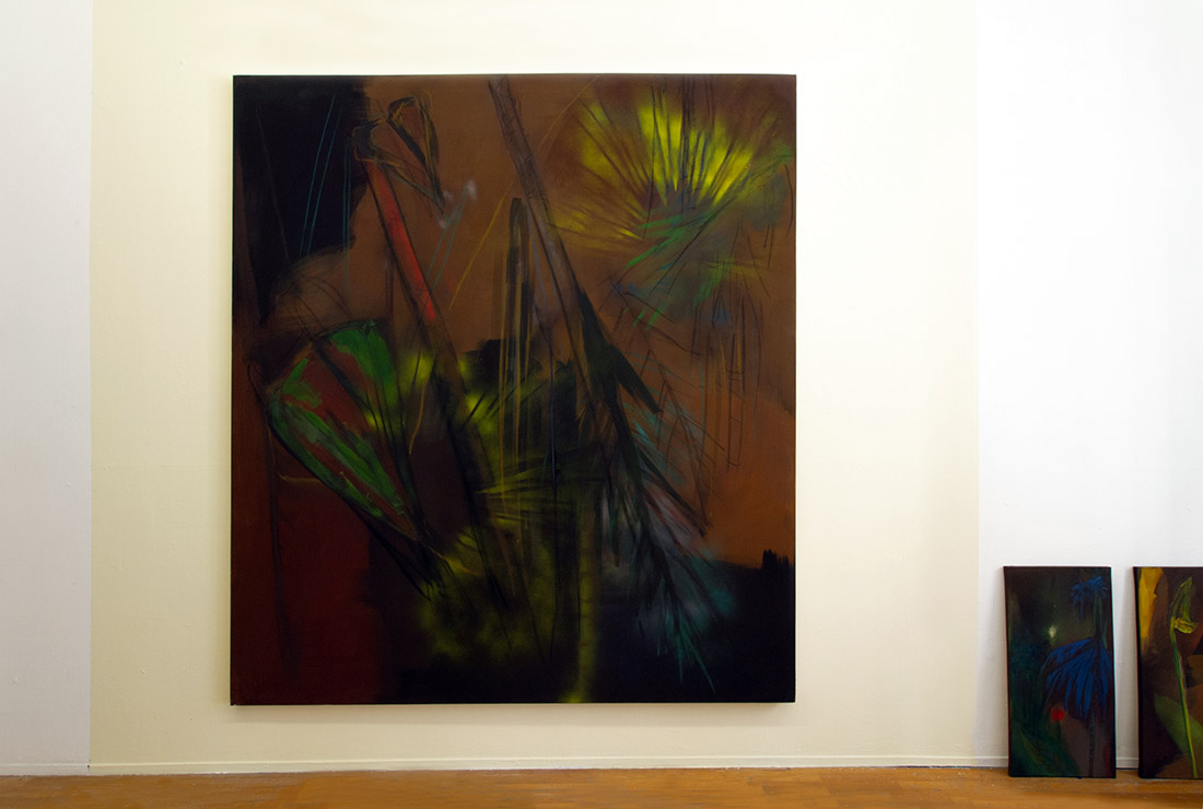 Spray, huile, acrylique et pigment sur toile, 160 x 180 cm |