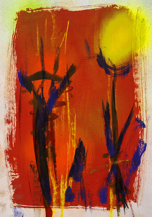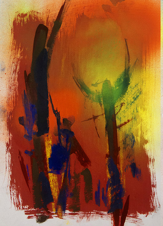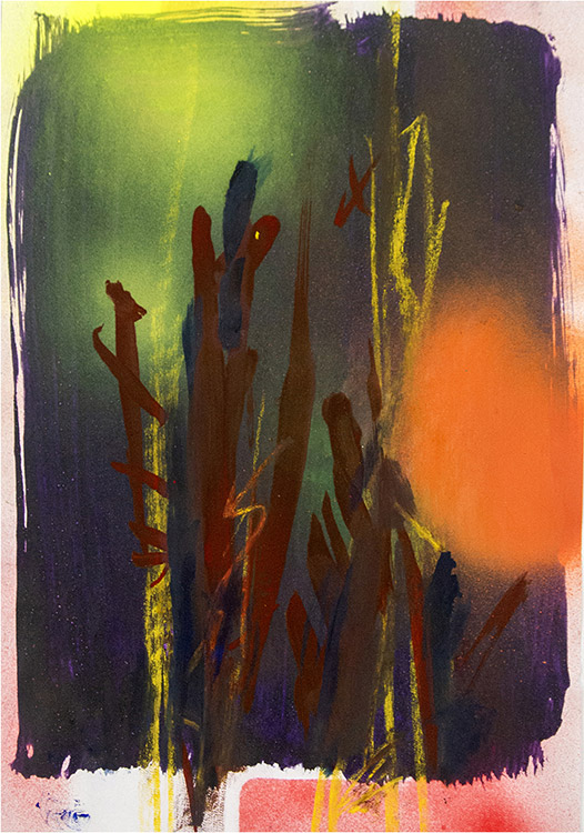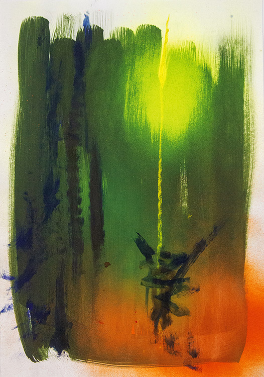 Pigment, spray, acrylique et huile sur papier, 21 x 29,7 cm