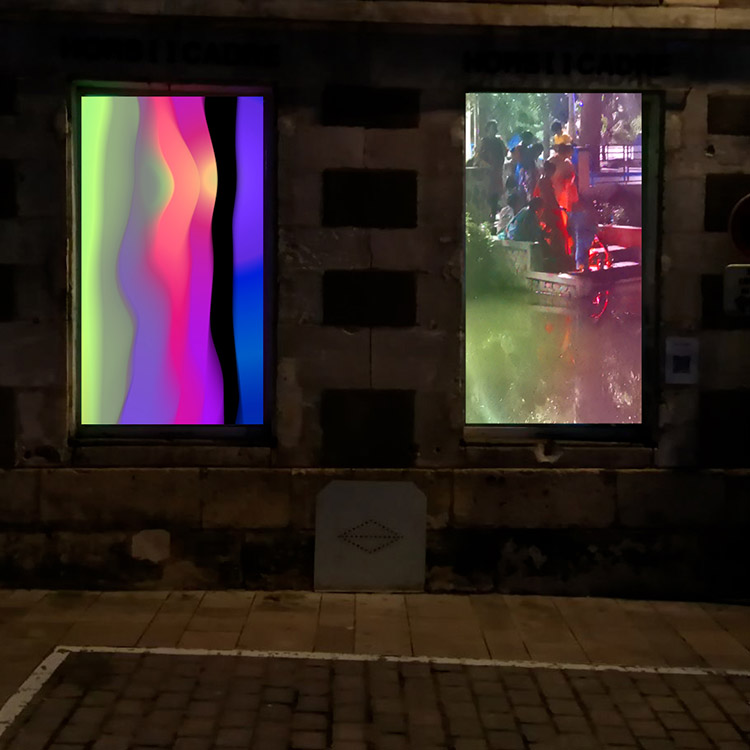 Projections nocturnes sur les fenêtres de Hors[ ]Cadre, visibles depuis la rue entre 18h et 22h30 |
