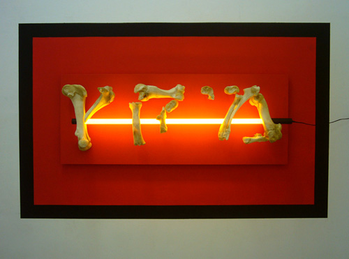 Os, néon, acier, verre, fil électrique, rat momifié, dimension variable