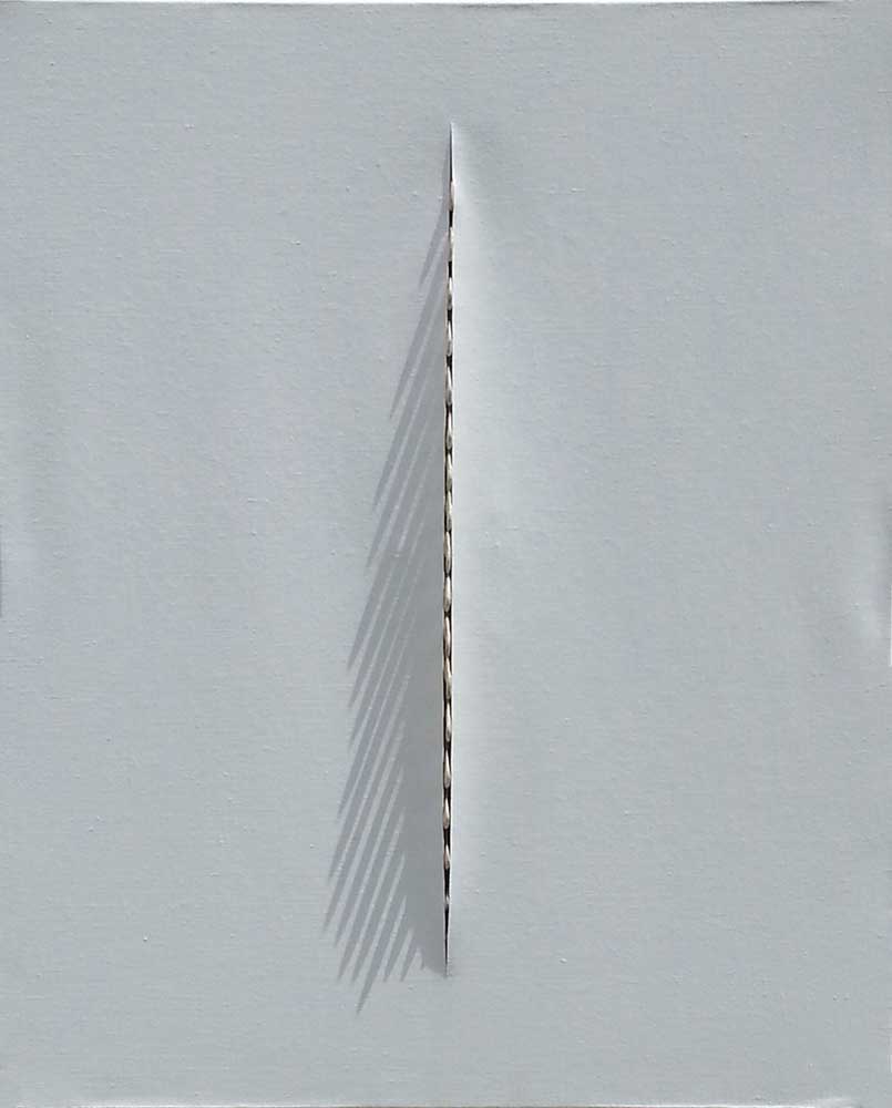 Dans ma production, c’est là un exercice plus formel, qui épouse l'histoire de l'art. Cette appropriation du travail de Fontana est-il un hommage au Maître ou une critique d'un art contemporain que je trouve parfois creux ? Un moyen de remplir le vide laissé par Fontana dans ses incisions ?