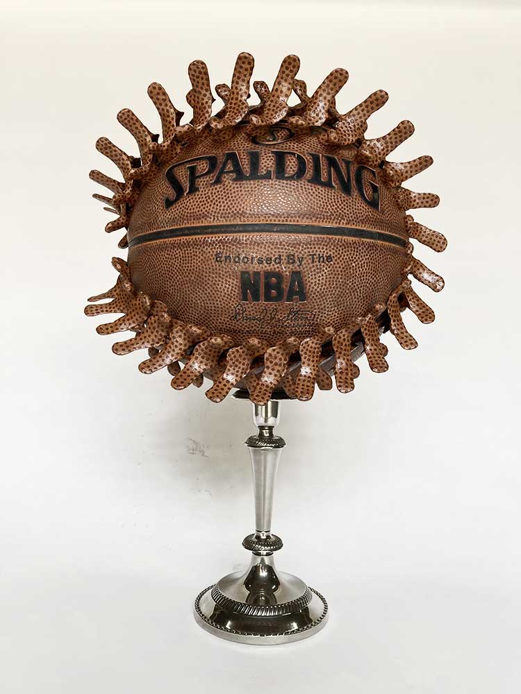 Ballon de basket, résine polyuréthane, chandelier en métal, 23,5x29x42,5cm