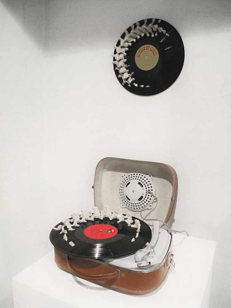Disque vinyle et résine polyuréthane, 33 x 6 cm