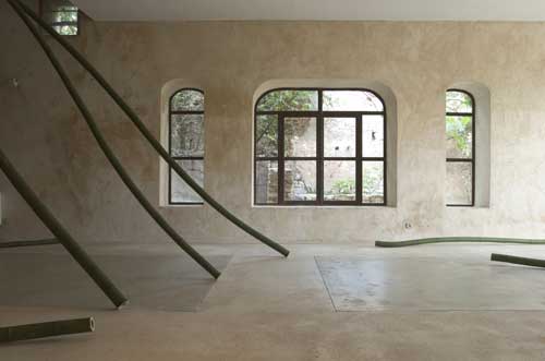 7 sections of bamboo thatch measuring approximately 7 meters long and 8 to 10 cm in diameter entirely hollowed and fitted with soundcards
