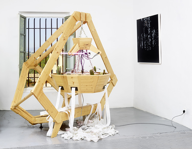 Bois, chaînes, 3 néons horticoles, plantes, électronique, 6 imprimantes thermiques