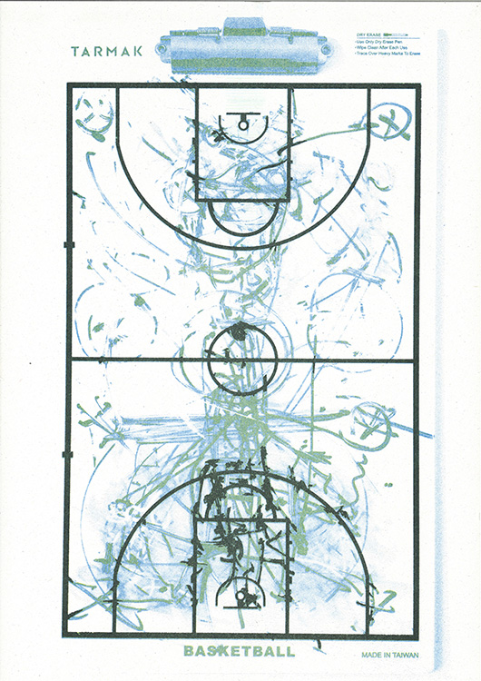 Au retour d’un match victorieux de l’équipe de basket de mon fils de 11 ans, j’ai vu les indications stratégiques de l’entraîneur laissées sur le tarmak. J’ai pensé que c’était un grand match.
